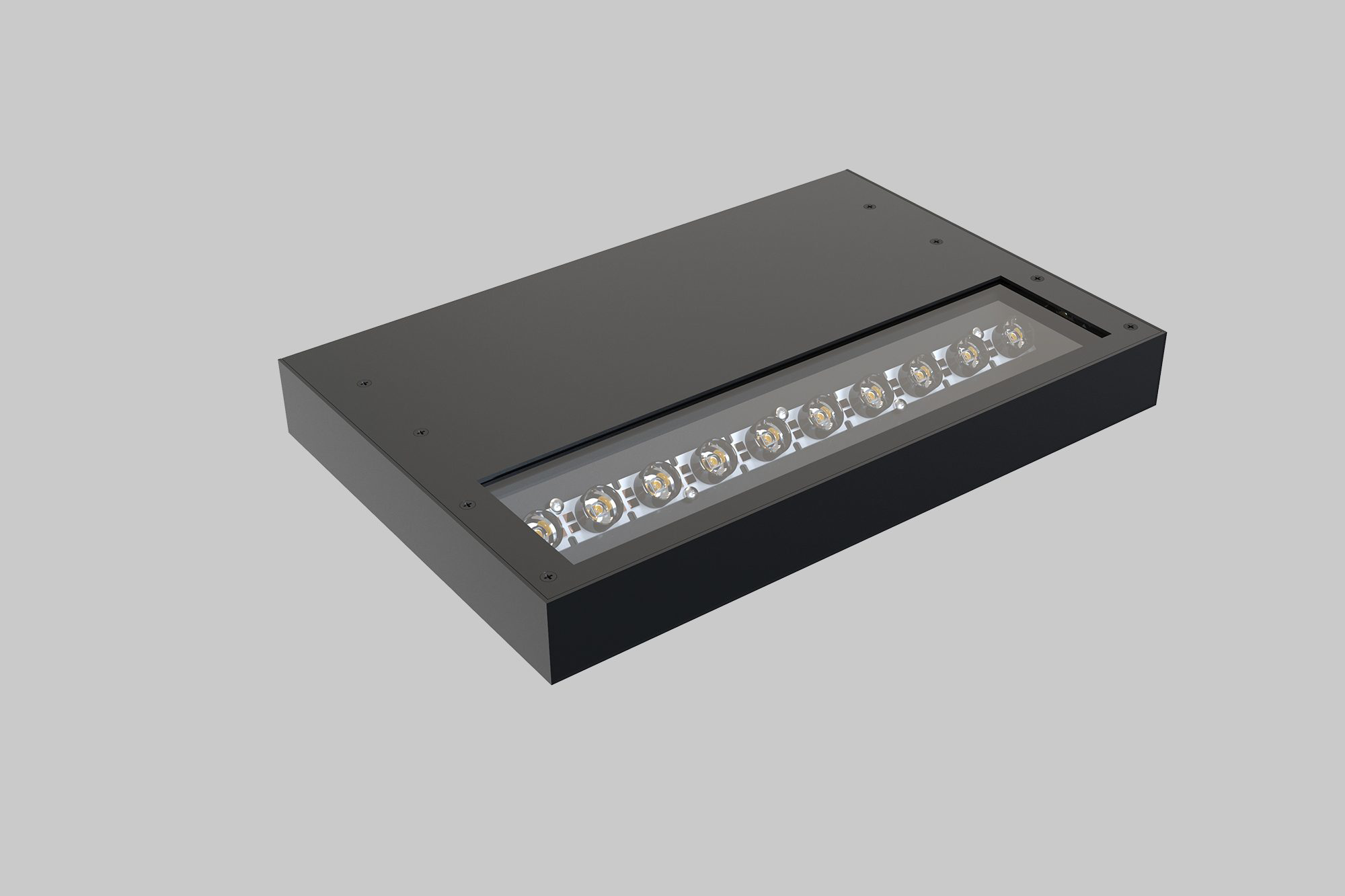 - Extruted aluminium body with electrostatic powder coated, transparent glass